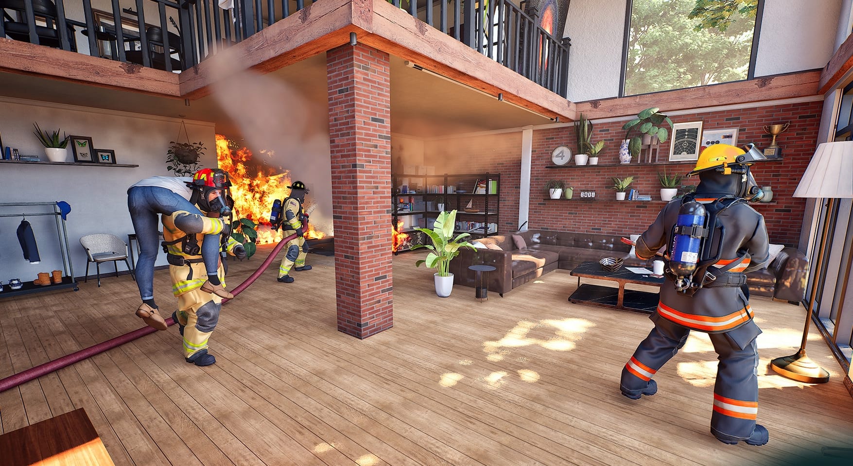 - Tout feu tout flamme. Cinq ans aprĂšs le dernier simulateur de pompiers, voici Firefighting Simulator : Ignite, du mĂȘme Ă©diteur. ConcrĂštement, on y retrouve les mĂȘmes mĂ©caniques que dans les simus de travail habituelles, sauf qu'en plus il y a du feu : on connecte la lance Ă incendie Ă la borne, on dĂ©coupe le toit de l'immeuble, on arrose les flammes, on porte des survivants, puis on conduit le camion jusqu'Ă la station. Attention, les premiers retours sont positifs mais recommandent d'attendre un patch ou deux.