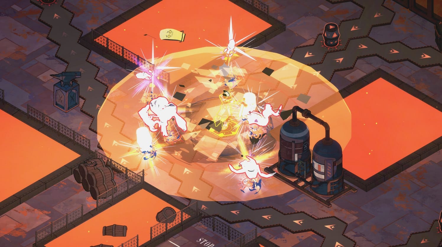 Et si Hotline Miami avait eu un enfant avec un feu d'artifice ? C'est Ă cette question qui dĂ©fie la biologie que Flashes of Chaos rĂ©pond. On y cavalcade dans des couloirs vus du dessus en dĂ©zinguant des ennemis Ă tire-larigot, sauf que nos armes sont personnalisables avec un complexe systĂšme de cartes : un mĂ©lange de "tirs rapides" et "explosions" transforme le pistolet en mitraillette atomique, mais "ricochets" et "cadence de tir rĂ©duite mais dĂ©gĂąts Ă©levĂ©s" le change en un genre de sniper Ă rebonds. Tout ça est rendu extrĂȘmement satisfaisant par une direction artistique trĂšs soignĂ©e, qui fait de chaque tir une dĂ©tonation de fusĂ©e Ă©clairante.