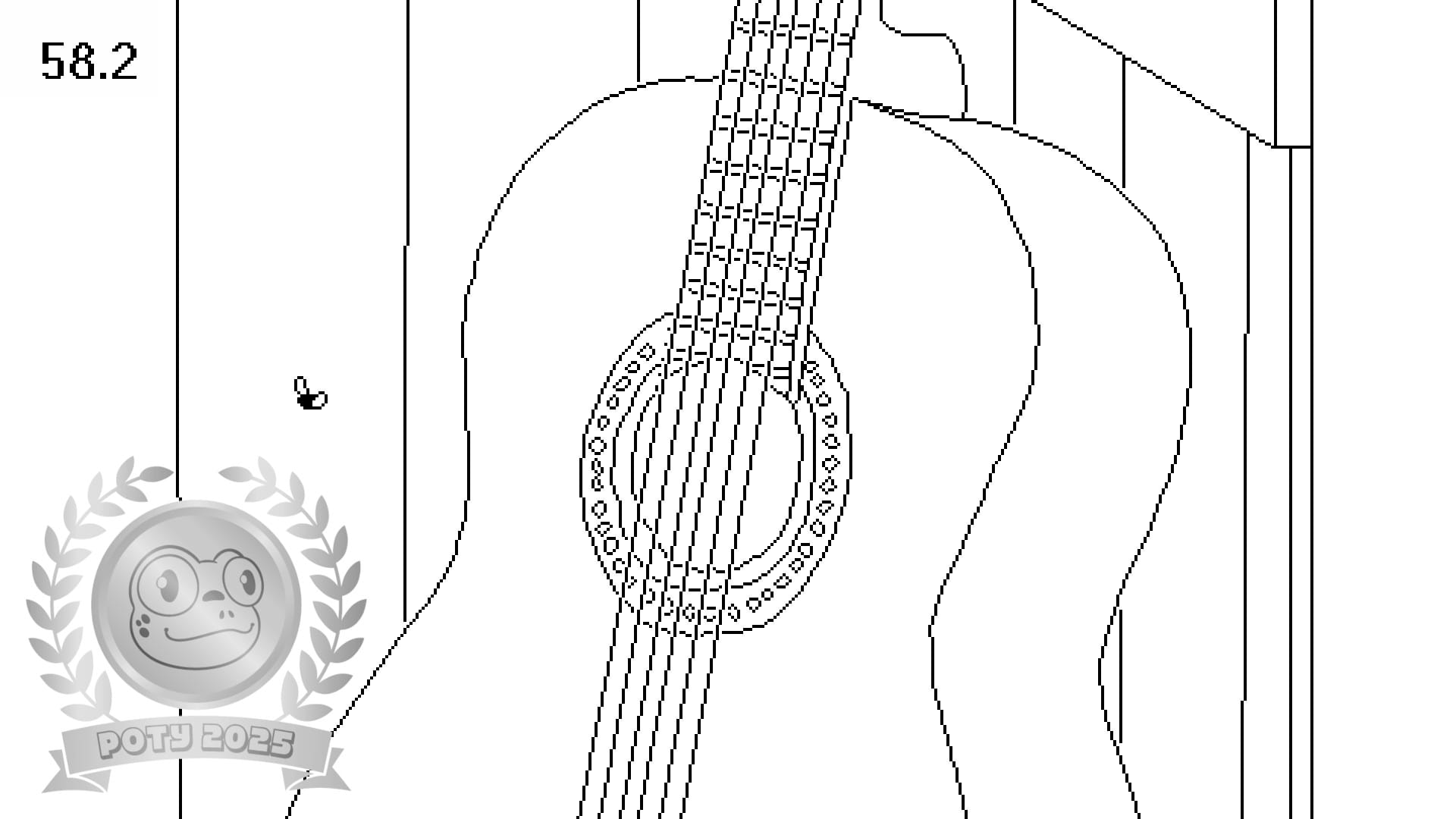 C'est le monde filiforme et noir et blanc de Time Flies que vos votes ont ceint du POTY d'argent. On y incarne une mouche qui explore une maison en une grosse minute (le temps exact dépend de l'espérance de vie dans notre pays), encore et encore. Un temps court, mais suffisant pour accomplir plein de choses, comme jouer de la guitare. Une réflexion franchement puissante sur le caractère éphémère de l'existence et pourquoi ça ne l'empêche pas de valoir d'être vécue.