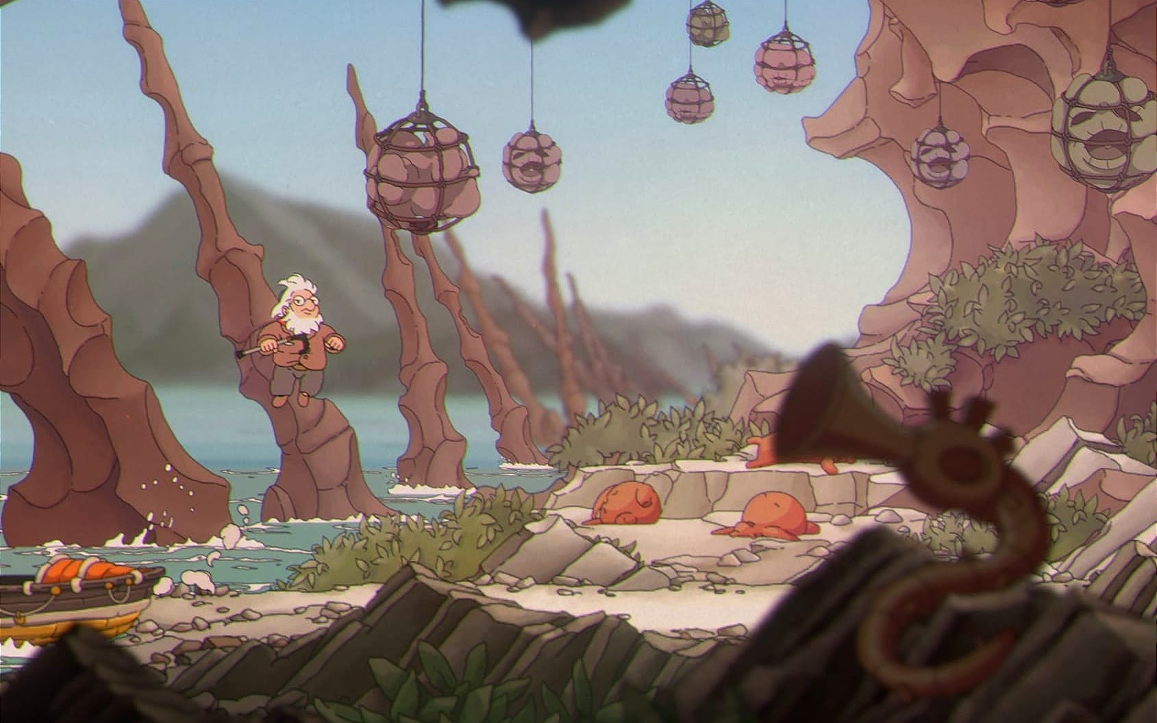 Dans des décors tropicaux à tomber – sans mauvais jeu de mot –, on y virevolte de plateforme en plateforme grâce à notre canne, dont on peut changer certains éléments (avec une poignée-crochet, un embout rebondissant, ...). Plein de trouvailles dans les mécaniques ou les sauts s'assurent qu'on en prenne plein les mirettes, et qu'on ne fasse pas trop vite le tour du concept.