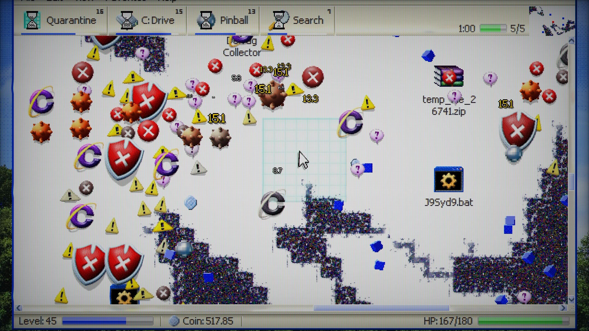 Comme son nom l'indique, Antivirus Survivors 2003 Professional est un clone de Vampire Survivors avec une thématique fort nostalgique : celle des ordinateurs d'antan, bourrés de virus dont Internet Explorer n'était pas le moindre. Cette démo démontre un concept assez solide, qui va au bout de son thème puisqu'on peut même utiliser comme arme le logo "DVD" qui rebondit sur les bords de l'écran. Du grand art.