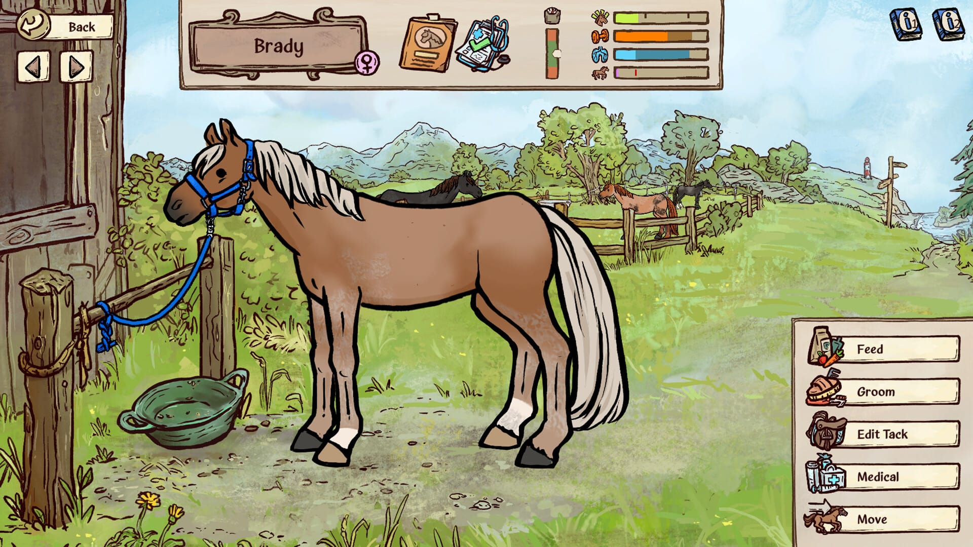 Les jeux de gestion de centre équestre ne sont pas légion, faisons donc une place à Horses of Hoofprint Bay. Avec sa vue de côté et ses différents tableaux (écurie, pré, manège...) où nourrir, brosser et faire travailler les chevaux, il ne s'agit pas d'un tycoon d'une profondeur insondable mais il ravit (semble-t-il) les connoisseur·euses de la chose équine. Rajoutez à ça des graphismes un peu naïfs dessinés à la main et vous obtenez un joli rappel des jeux de gestion en flash qui ont parsemé les années 2000.