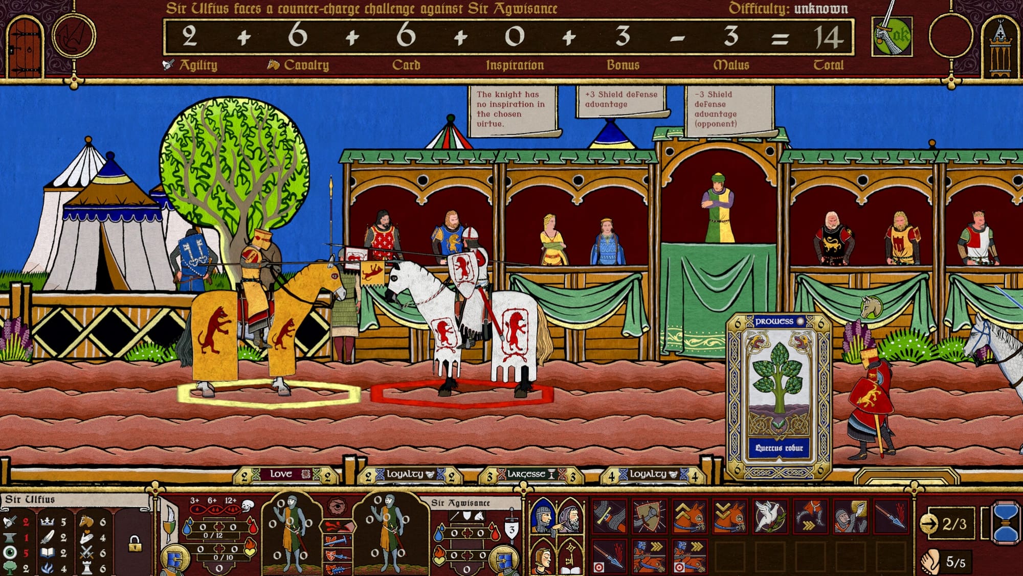 Démo bizarre mais époustouflante que celle de Legends of the Round Table, jeu en illustrations médiévales où l'on gère un groupe de chevaliers de la table ronde qui vivent les grandes quêtes arthuriennes. Les enluminures sont à tomber, leur intégration dans l'interface rappelle bien sûr Pentiment et c'est un vrai plaisir d'évoluer dans ce monde si minutieusement dessiné, même si les combats laissent perplexe en voulant tout faire à la fois : déplacements sur une grille, deckbuilding, compétences, stats, dégâts localisés, montures, etc. Une complexité bienvenue, mais un peu traitre dans un jeu que beaucoup lanceront pour ses graphismes.